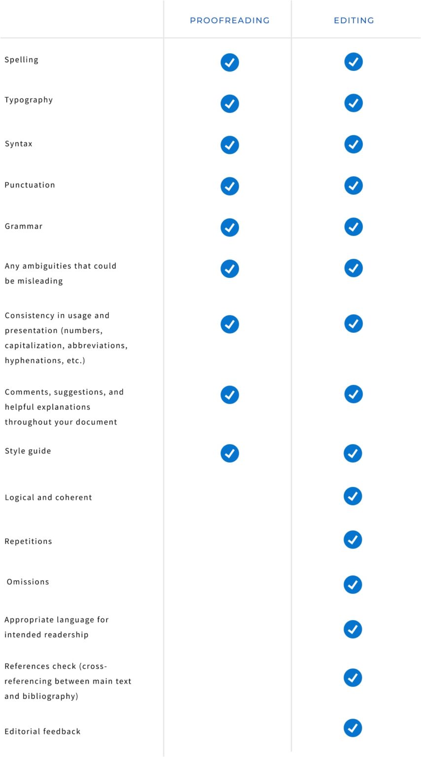 Have a look at the overview below to decide whether my proofreading or editing service is right for you and your writing needs.